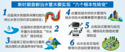 北京市水務局負責人在接受記者采訪時表示,北京將按照“節水優先、空間均衡、系統治理、兩手發力”的治水新思路,以水資源安全保障為中心,以供水安全、防洪排澇安全、水生態環境改善為主線,加強城鄉一體化水務基礎設施建設,加快推進“六個根本性轉變”,全面提高水安全保障能力,為建設國際一流的和諧宜居之都提供堅實的水務支撐。